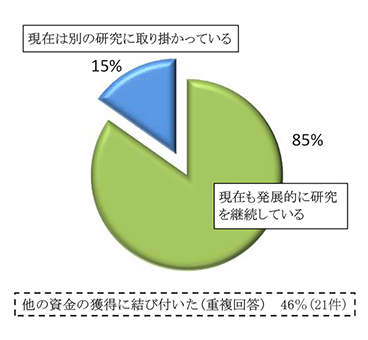 また、「研究を継続することができたので、企業との共同研究へさらに発展できた」「研究が基礎的・挑戦的であるため研究資金に苦慮しているが、助成金により研究を大きく発展させることができた」「研究を進めることができ、国内外の研究者から高く評価され、自身の昇進にもつながった」などの研究者からのご意見もいただきました。